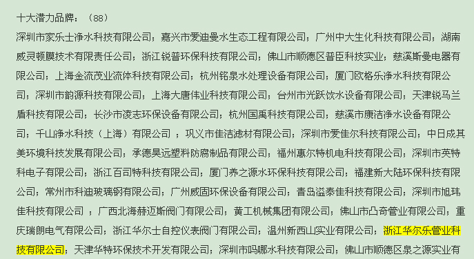 浙江華爾樂管業(yè)科技有限公司被評為“十大潛力品牌”